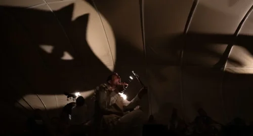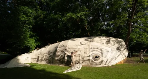 V park je priletela petnajstmetrska lutka kita, ki se hrani s kamni, z veseljem pa pogoltne tudi občinstvo. V kitovem trebuhu se 33 gledalcev s pomočjo lutk, petja ter žive glasbe poda v svet sanj – tam se srečajo z nenavadnimi bitji, soočajo s strahovi iz davnine in prisluhnejo kamnom. Predstava navdihnjena z zgodbami in motivi staroselskih kultur odpira vprašanja o odnosu človeka do narave, o naših primarnih strahovih ter o močeh, ki se skrivajo znotraj nas.